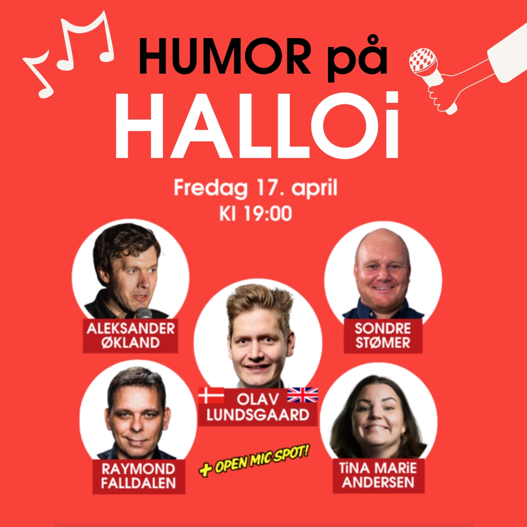 Hver fredag braker det løs med Humor på HALLOi! Fem dyktige komikere serverer latter, gode historier og skikkelig fredagsstemning. Billetter: 149 kr via Ticketmaster og 189 kr i døra. Dørene åpner kl. 18:00, showstart kl. 19:00.